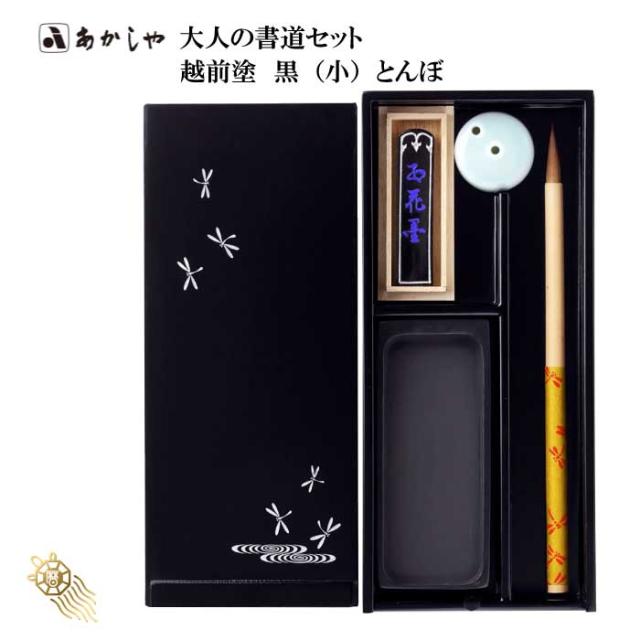 大人の書道セット 越前塗 黒(小)とんぼ あかしや 筆 細筆 写経 硯 墨 水滴 書道セット インク 硯箱 持ち運び 簡単 初心者 書道 開運 おうち時間 趣味 プレゼント ギフト 994181