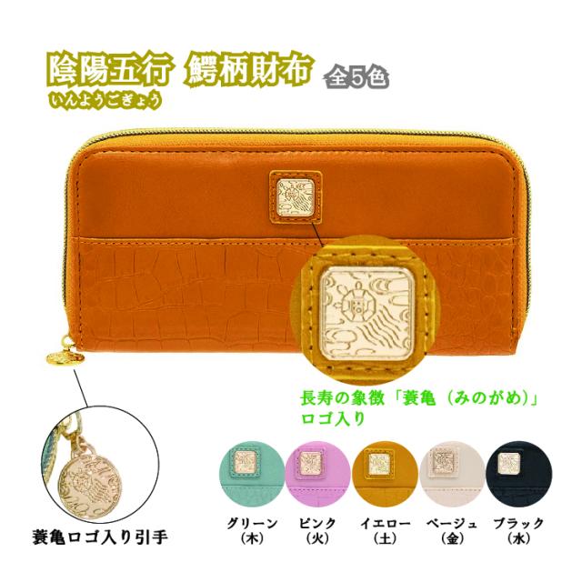 【送料無料】陰陽五行 鰐柄財布(いんようごぎょう わにがらさいふ) 財布 長財布 メンズ レディース 開運財布 開運 金運 健康運 カードポケット ラッキーカラー 陰陽五行 グリーン ピンク イエロー ベージュ ブラック 994328