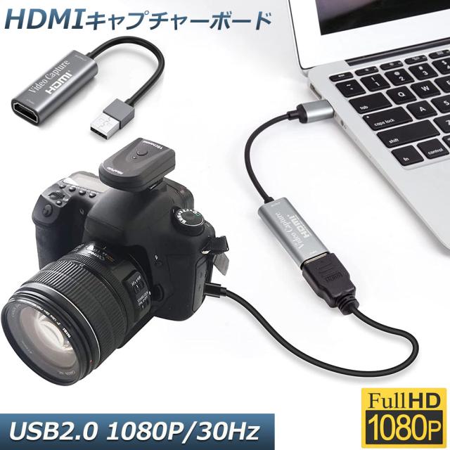 HDMI キャプチャーボード USB2.0 1080P 30Hz HDMI ゲームキャプチャー ビデオキャプチャカード ゲーム実況生配信 画面共有 録画 ライブ会議に適用 小型軽量 DSLR ビデオカメラ ミラーレス PS4 Nintendo Switch、Xbox One、OBS Studio対応 電源不要