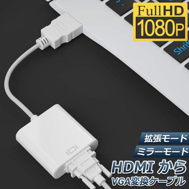 HDMI VGA 変換アダプター ホワイト hdmi vga変換ケーブル D-SUB 15ピンHDMI オス to VGA メス 1080P 高速伝送 小型 携帯便利 金メッキ 高耐久性 プロジェクター PC HDTV DVD対応