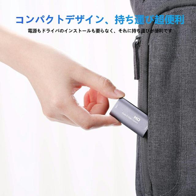 【HDビデオキャプチャ&ゲームキャプチャ&オーディオキャプチャ機能】高速USB 2.0テクノロジーを搭載し、1080P 60HZ 30FPS HDMI HDビデオ信号をキャプチャおよび転送することができます(最高解像度は3860x2160、フレームレート:30fps)。【高品質デザイン】ユニボディアルミ合金の外装、イオン化仕上げ、高品質の製造、耐久性を採用しています。外殻ケースが高品質のPC耐火材料で作られます。過熱、ショートなどを防止する保護システムを備え、PSE、TUVなどの認証が取得済み、安全な充電を提供いたします。