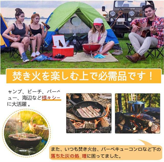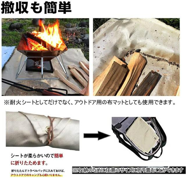 【キャンプやバーベキューの必需品ですよ】 野外キャンプでも,家の庭の芝生あるいは露台でバーベキューしても,焚き火シートはなくてはならないですよ。それをだき火の下に置いて、熱い木炭や火のついた薪が落ちても、全く燃えません。