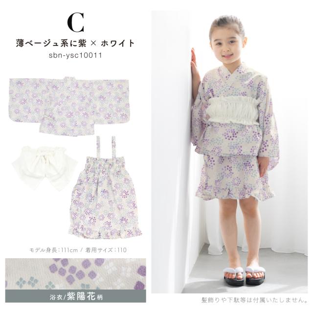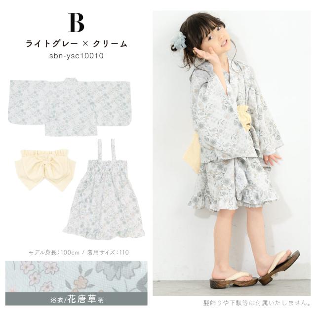 浴衣 子供 セパレート 女の子 キッズ 浴衣セット ワンピース 二部式浴衣 帯 3点セット 吸水速乾 floro モダン フリル 簡単 おしゃれ かわいい くすみ レトロ 送料無料