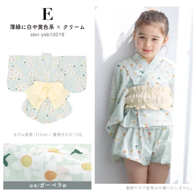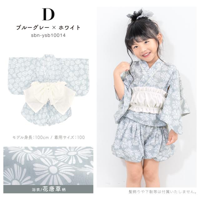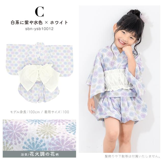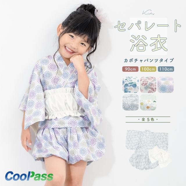 浴衣 子供 セパレート 女の子 ベビー 浴衣セット かぼちゃパンツ 帯 3点セット SOUBIENオリジナル 吸水速乾 CoolPass モダン 白系 水色 ピンク 紫 グレー 薄緑 花柄 90 100 110 送料無料