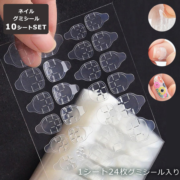 ネイル 接着剤 ネイルシール 10枚 グミシール ジェルネイルシール ネイルチップ ネイルアート つけ爪 グルー 粘着グミ チップ 透明 グミ 両面テープ