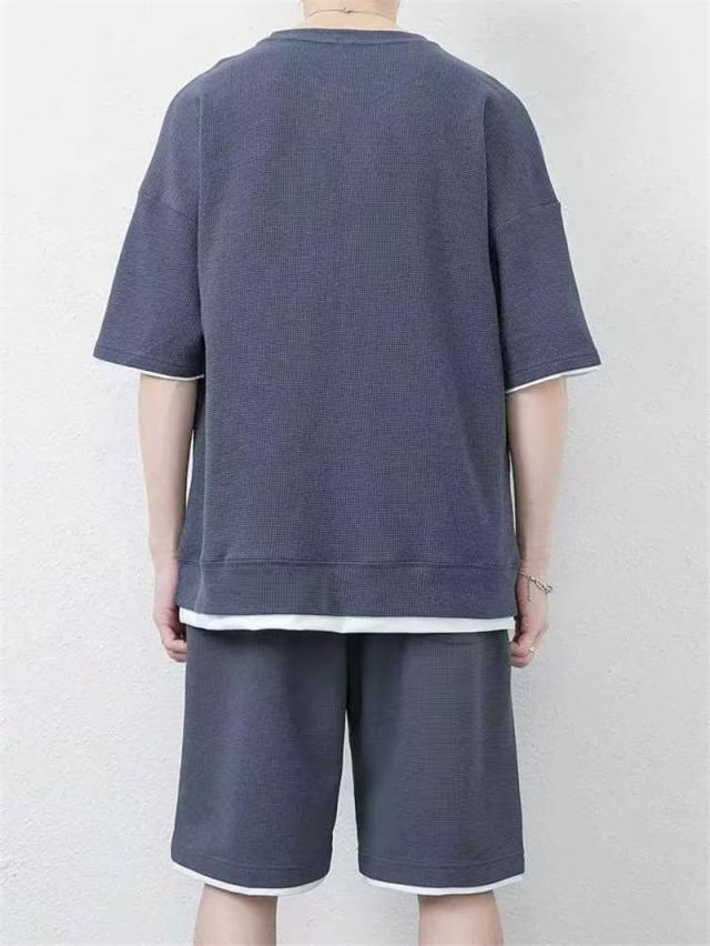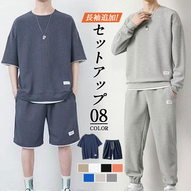 【2点ご購入で300円OFF】パジャマ セットアップ 上下セット メンズ 半袖 スウェット 薄手 ハーフパンツ 接触冷感 五分丈 ルームウェア 部屋着 カジュアル ゆったり