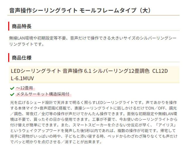 「メーカー在庫限り!ご注文はお早めに!」 CL12DL61MUV 声であかりを操作する本体マイク+音声認識IC搭載