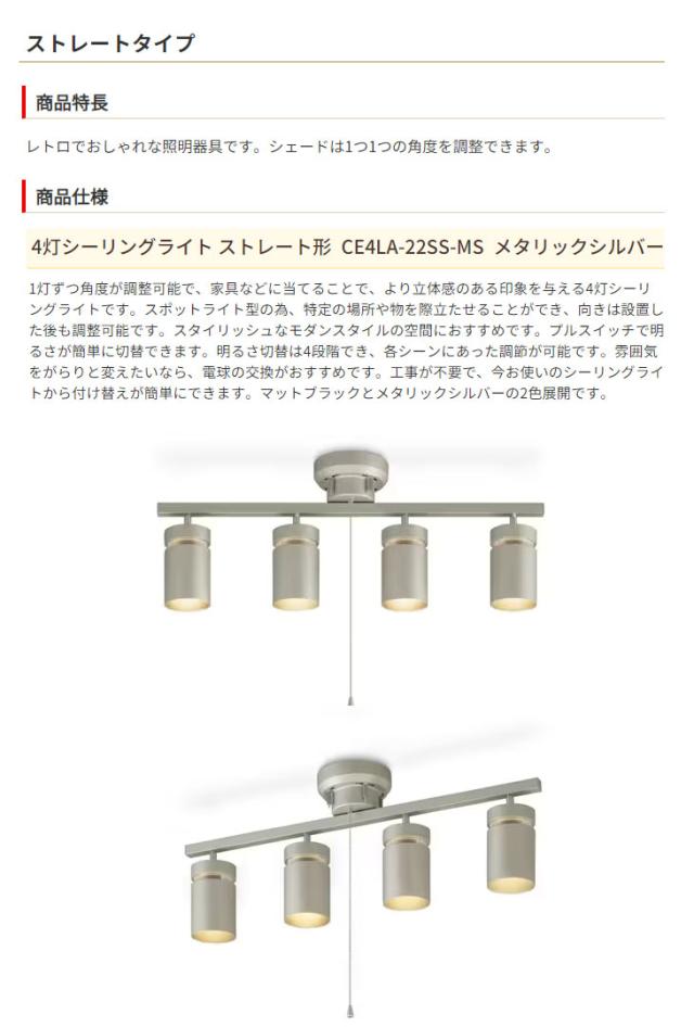 CE4LA-22SS-MS(メタリックシルバー) 4灯シーリングライト ストレート形