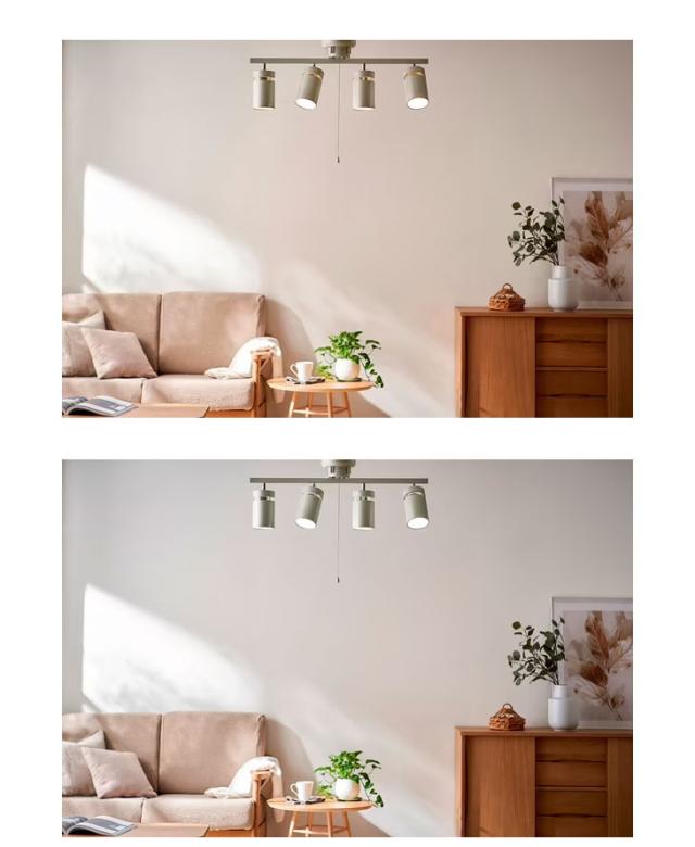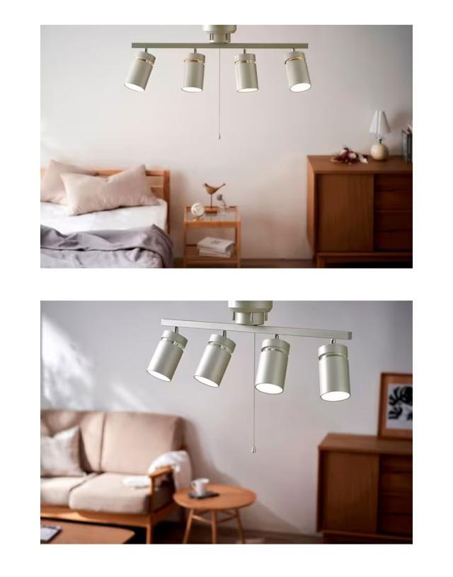 1灯ずつ角度が調整可能で、家具などに当てることで、より立体感のある印象を与える4灯シーリングライトです。