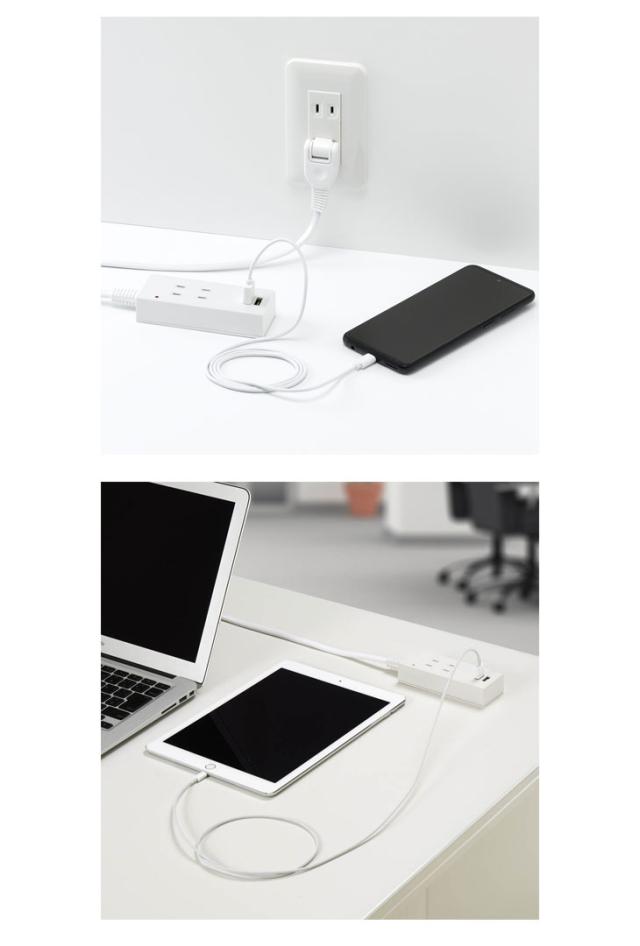 H1K4012UWH 雷ガード付両挿しUSBタップ 2個口1mホワイト【日本国内専用】