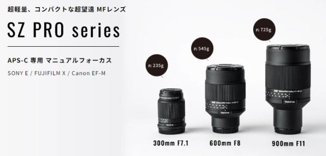 CANON EF-M mount ※メーカー在庫僅少の為、納期にお時間がかかる場合があります。 SZ900mmPROF8MFE 圧倒的に軽量、コンパクトな超望遠レンズ「SZ PRO」 APS-C専用900mm