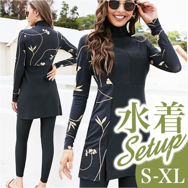 水着 レディース 体型カバー ママ水着 2点セット 通販 ラッシュガード タンキニ ビーチウェア 長袖 スカート 長ズボン セパレート フィットネス水着 水陸両用 2点 セット 露出控えめ 大サイズ かわいい フィットネス 女性用 大人 女子 水中 運動
