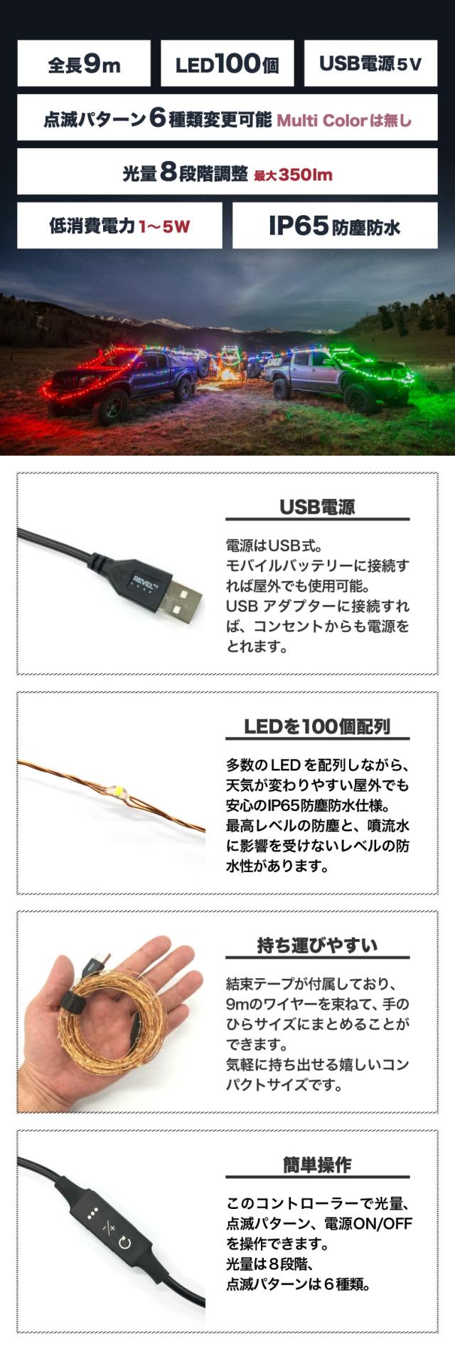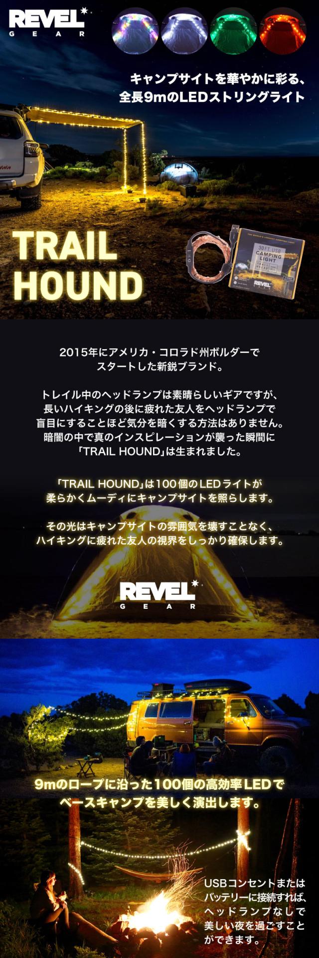 【送料無料】 ガーランド ライト キャンプ 防水 イルミネーションライト 9m TRAIL HOUND LEDガーランド 照明 LEDライト LED100個 USB充電 LEDロープライト パーティー インテリア アウトドア 子供部屋 野外 フェス 誕生日 結婚式 屋内 屋外装飾 北欧 雑貨 おしゃれ REVEL