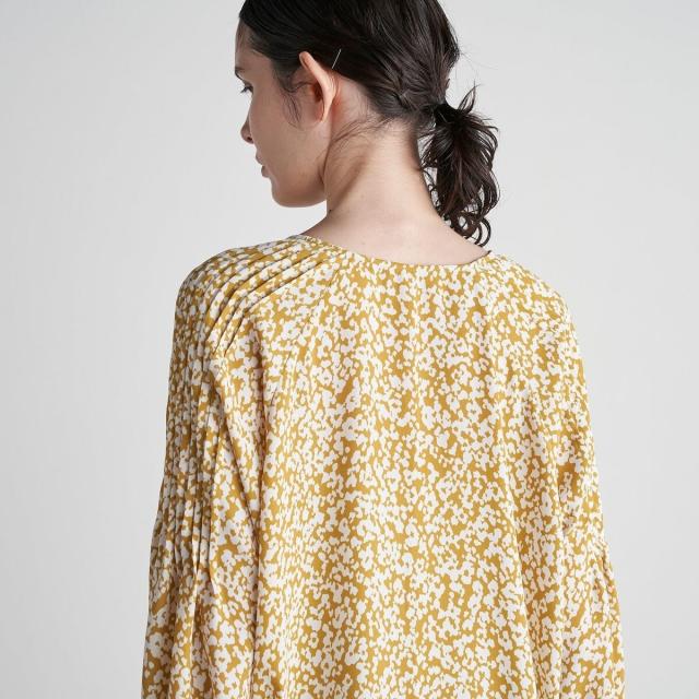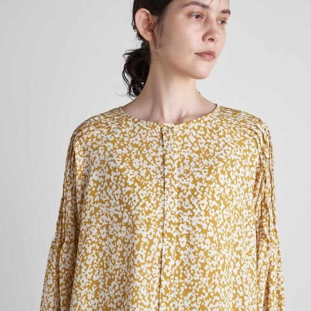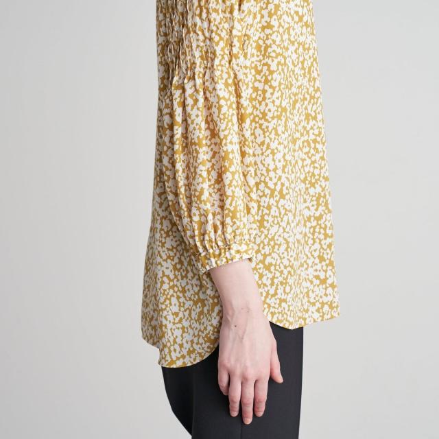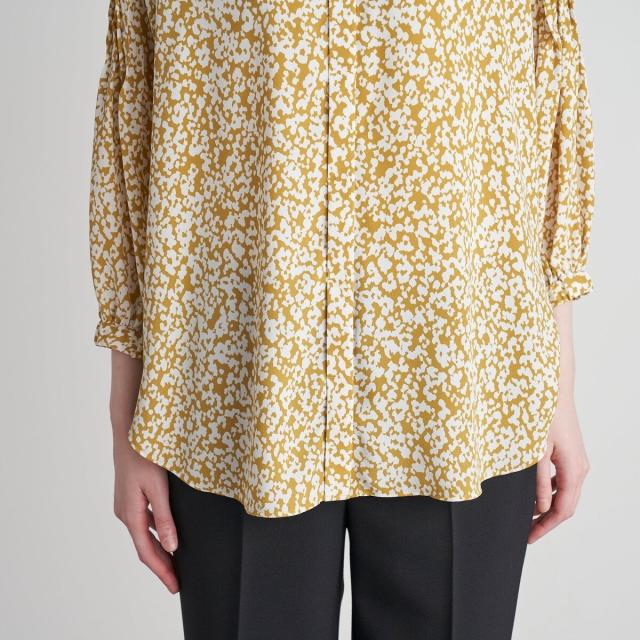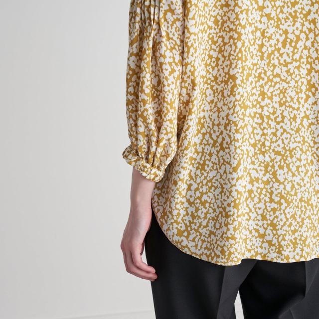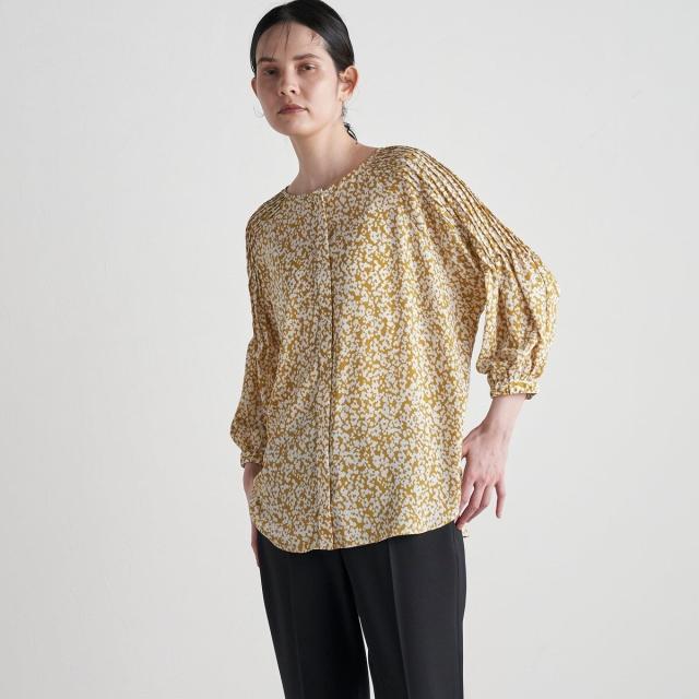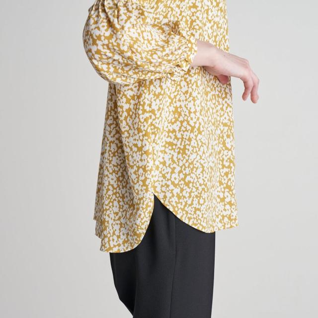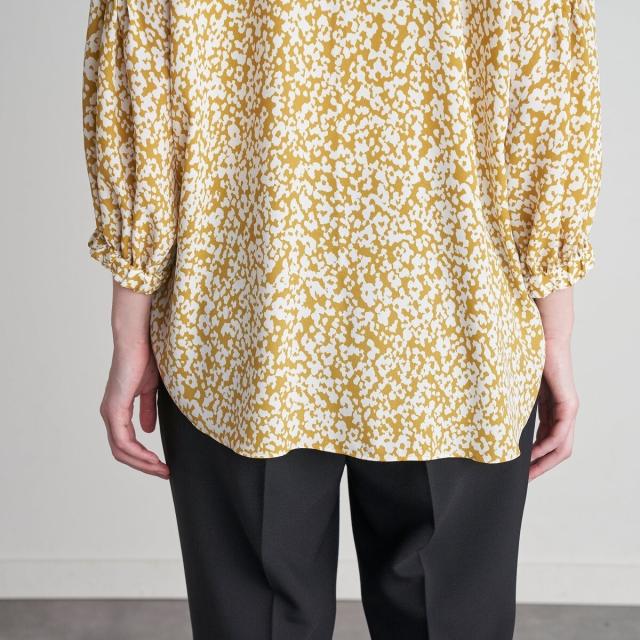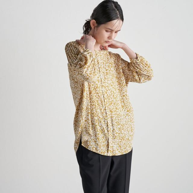 一枚でも羽織のインナーとしても着まわしやすいプリントブラウス。