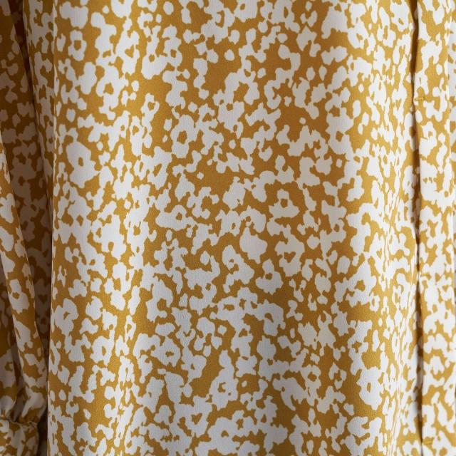 ポリエステルの強撚糸を使用することで、表情ある表面感を出しながらも、柔らかいドレープ性が出ており、仕立て映えのする国産プリント素材になります。