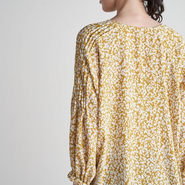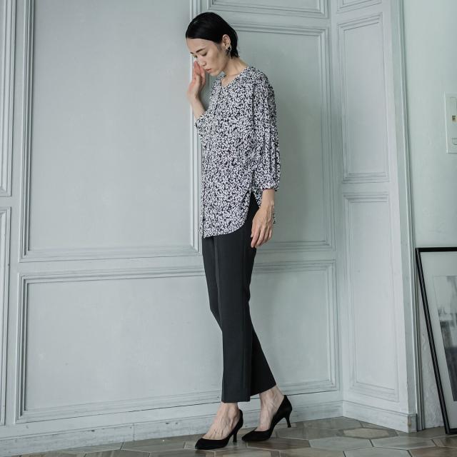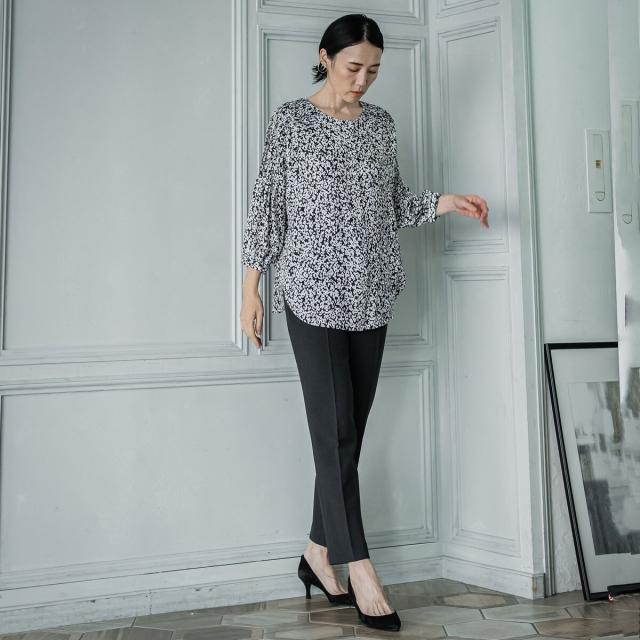 人気のブラウスデザイン(肩の華やぎタックディテールとブラウジングできる袖口ゴム仕様)を取り入れながら少しスッキリと見えるパターンにアップデートしています。
