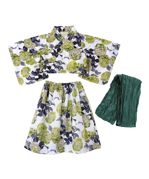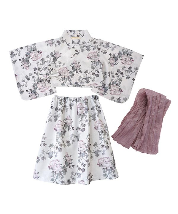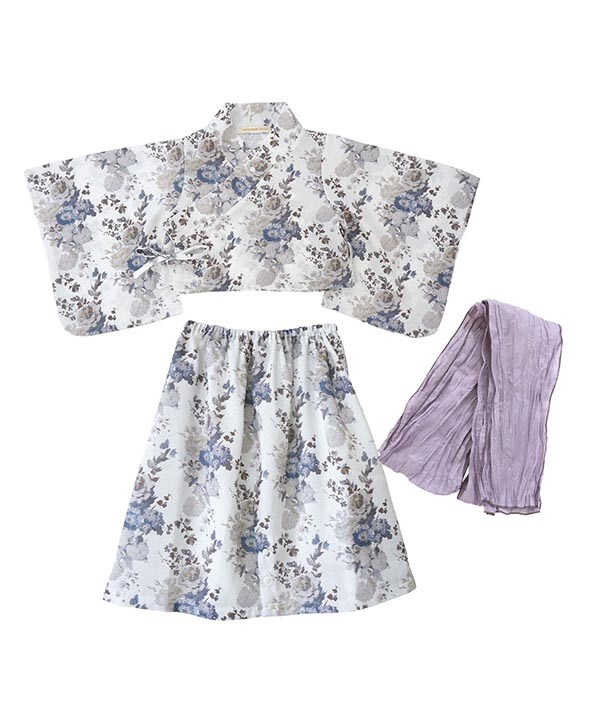 届いたその日からお出掛けOK!上衣、スカート、兵児帯の3点セット。