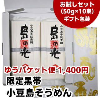 【小豆島手延素麺】 小豆島 そうめん 「島の光」 高級限定品 黒帯 プチ ギフト 50g×10束【送料無料・ゆうパケット便】 ギフト包装 御礼 お中元 あいさつ