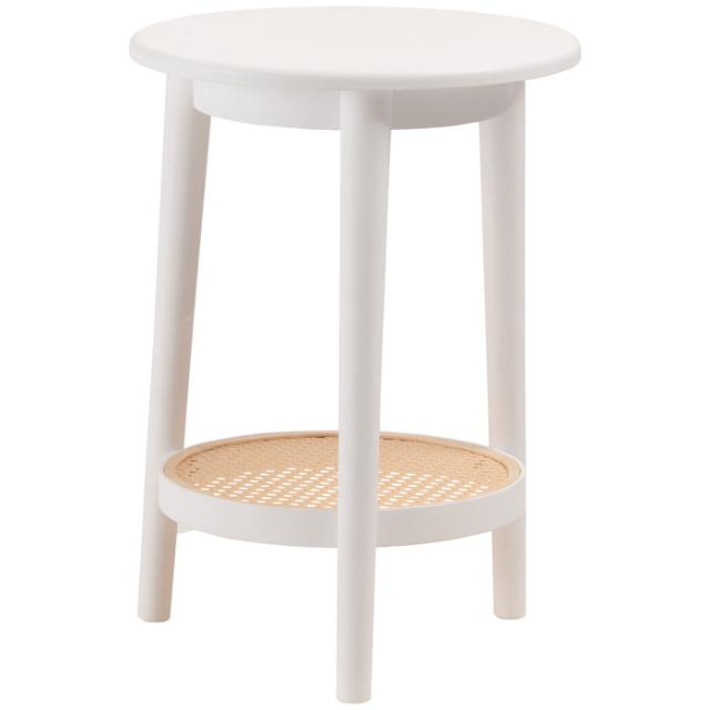 ●テーブル サイドテーブル ラタン 丸 円 二段 2段 北欧 韓国インテリア シンプル ナチュラル 寝室 ソファーサイド 白 ホワイト