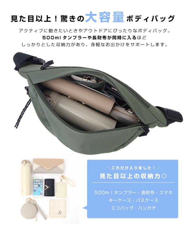 ボディバッグ レディース カラビナ付き マチ広 ショルダーストラップ 着脱簡単 大人可愛い おしゃれ デイリー ママバッグ 旅行【メール便不可】