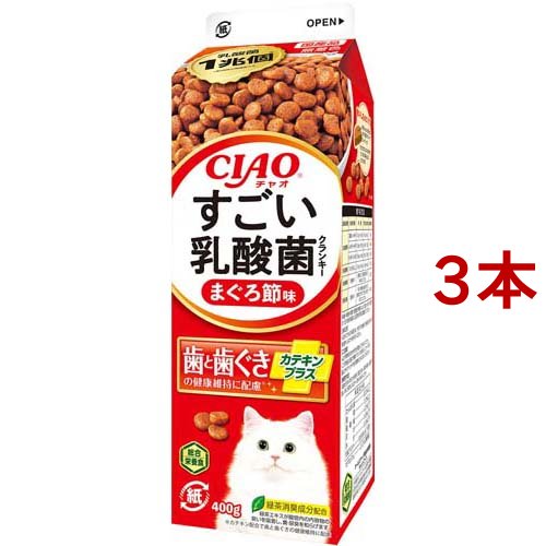 CIAO すごい乳酸菌 クランキー 牛乳パック まぐろ節味(400g*3本セット)[キャットフード(ドライフード)]