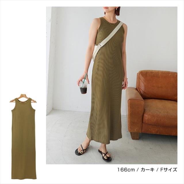 サーマル カップ付き アメリカンスリーブ ワンピース レディース ワンピ ノースリーブ Iライン クルーネック ロング丈 マキシ丈 バックスリット アメスリ 無地 ワッフル かわいい 大人 きれいめ ゆったり オフィス カジュアル 綿100% シンプル ロング丈 マキシ丈 春 夏 秋