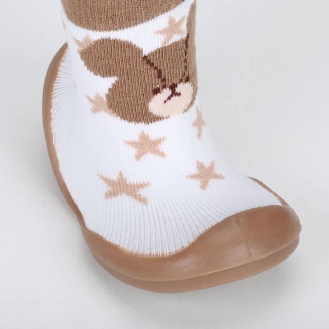●シューズの上部は靴下のように柔らかく伸縮性があり、赤ちゃんの足に優しくフィットします。