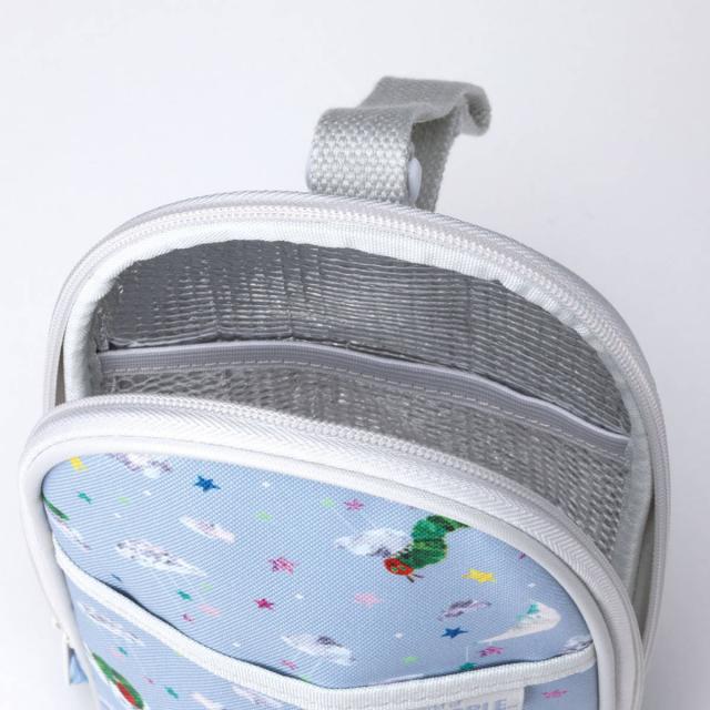 内側には、保温・保冷効果のあるアルミ生地を使用しています。暑い日も寒い日も楽しく快適におでかけのお供として活躍してくれます。また、ポーチの外側と内側には小物類の収納に便利なポケットがついているので、ガーゼやスティックミルクなど外出に必要なものを入れておくことができます。