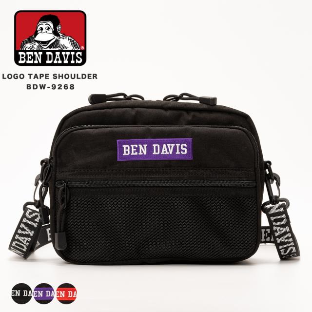 BEN DAVIS 2way ショルダーバッグ ポーチ LOGO TAPE SHOULDER ライブ フェス 収納 マチ ブラック パープル レッド 黒 紫 鞄 バッグ 斜め掛け ユニセックス メンズ レディース 女性 ベンデービス BDW-9268 ブランド 送料無料