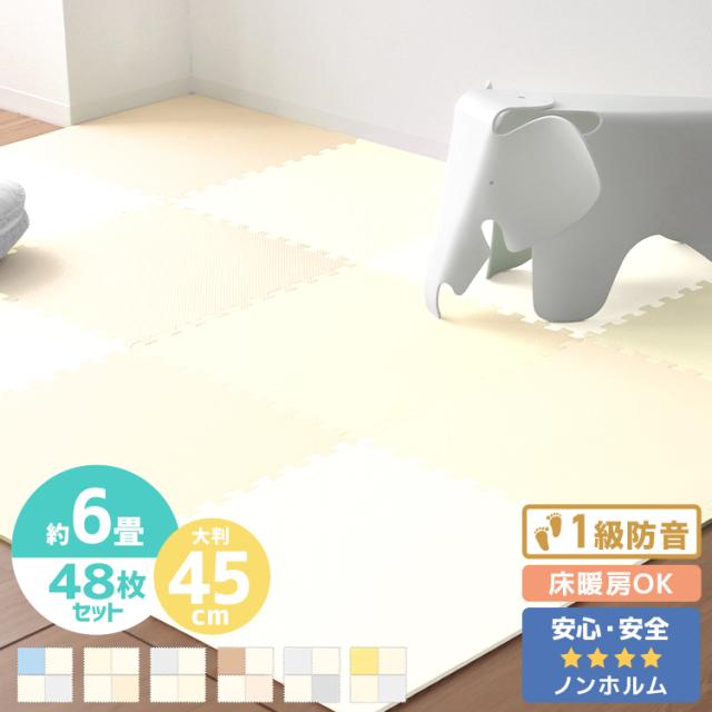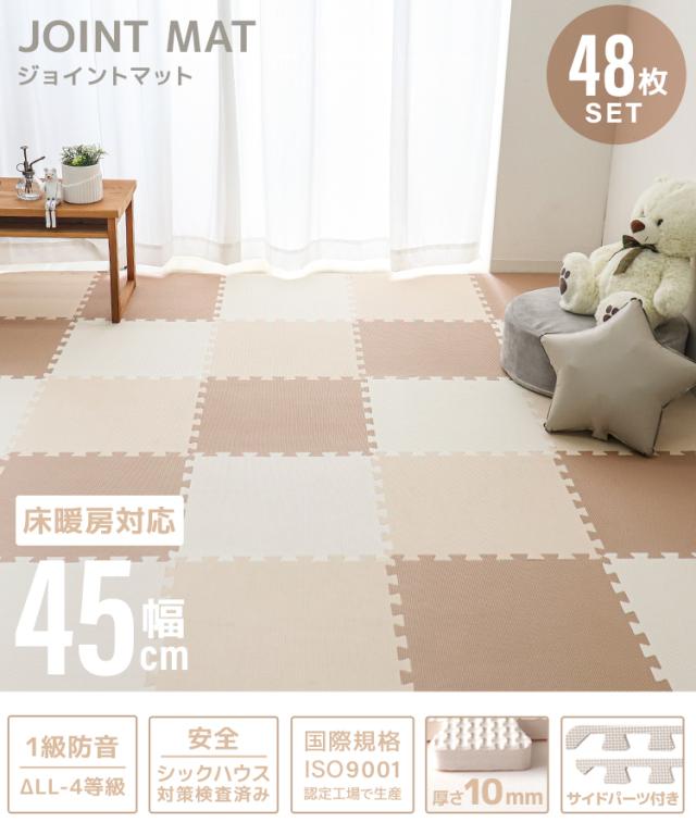 ジョイントマット 45cm 48枚 6畳 1級防音 おしゃれ カラフル くすみカラー サイドパーツ付 プレイマット ペット ジョイント マット カーペット ラグ 大判 抗菌 防臭 フロアマット 子供 キッズマット ベビーマット 床暖房対応 送料無料