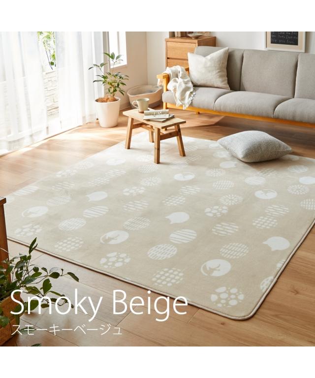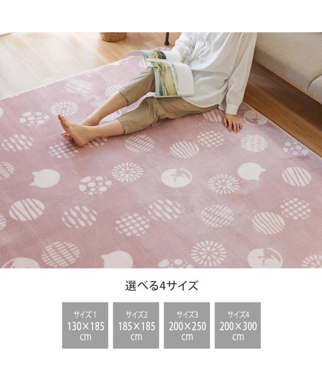 ラグ 洗える ねこ柄マイクロファイバーラグ スモーキーピンク/スモーキーベージュ 約185×185cm ニッセン nissen