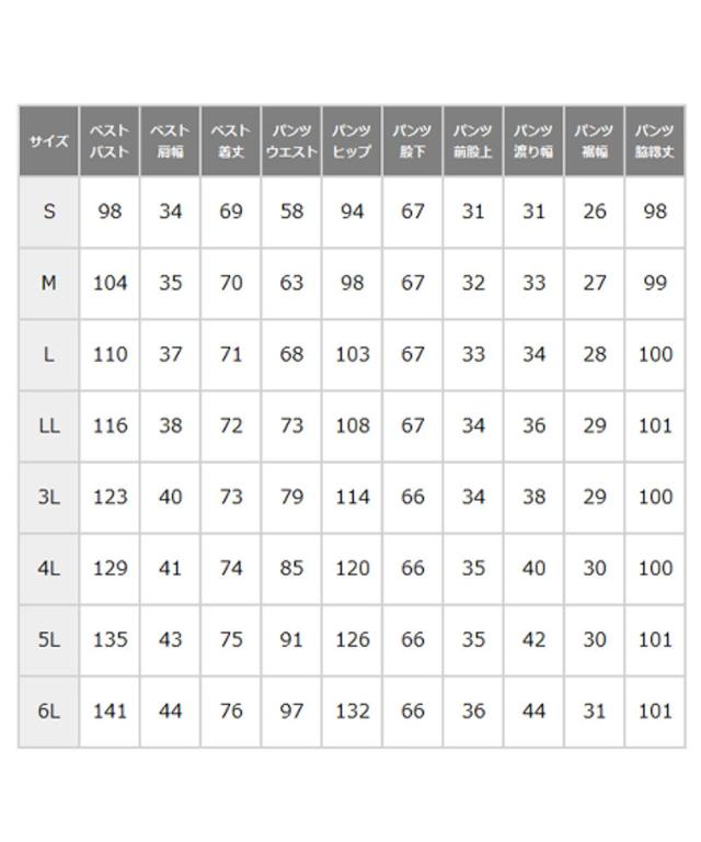 ・ ベスト(5L〜6L)はこちら ・ パンツセットアップ(S〜LL)はこちら ・ ベスト(S〜4L)はこちら |
