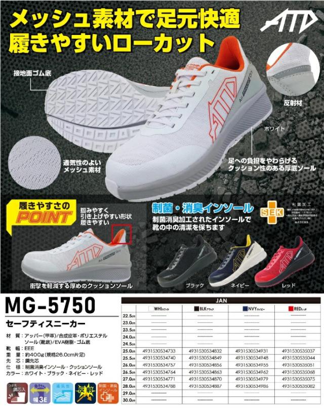 喜多 MG-5750 セーフティスニーカー 28.0cm 安全靴 ローカット BLK ブラック KITA キタ 送料無料