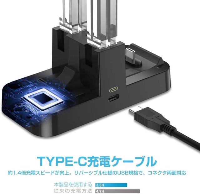 【多機能充電スタンド】Nintendo Switch用 Joy-Con&Proコントローラー充電スタンドがいよいよ発売。「充電方法1:Joy-Con×4台」、「充電方法2:Joy-Con Proコントローラー×2台」、「充電方法3:switch Joy-Con×2台+Proコントローラー×1台」【LED ライトインジケーター】 明確なデュアル色のLED ライトインジケーターが充電状態を示します。Joy-Con/Proコントローラーの充電状態が分かる便利なステータスランプ搭載でJoy-Con/Proコントローラーの充電完了を個別にお知らせする。