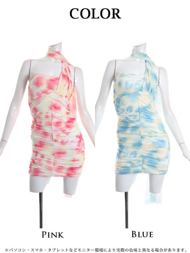 ☆マーブル柄に鮮やかで可愛いカラードレスは個性的で人とは被らない一目惹くタイトミニドレス♪
