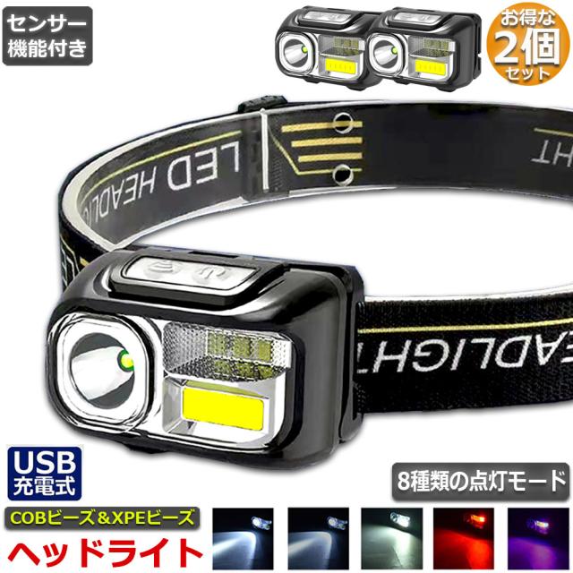 ヘッドライト 充電式 ledヘッドライト 2個セット アウトドア用ヘッドライト SOSフラッシュ 8つ点灯モード 軽量 角度調整可 防災 停電時用 登山 夜釣り キャンプ アウトドア ハイキング