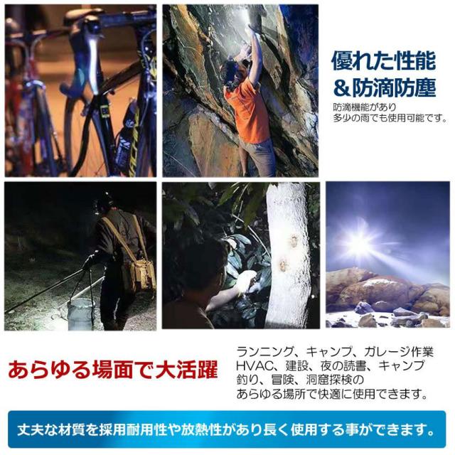 【多機能用途】キャンプ、ランニング、釣り、登山、ハイキングなど、日常使いに最適なLEDヘッドライト。 パッケージには2つの充電式ヘッドライトが付属しています。1つは車内に保管し、もう1つは自宅に保管するか、友人や家族にプレゼントしてください。