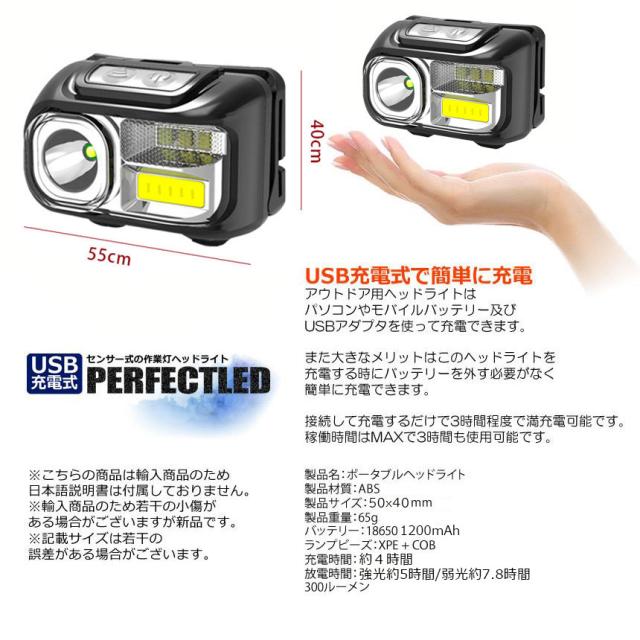 【充電式ヘッドランプ】コンパクトなUSB充電式リチウムポリマーバッテリー(1200mAh)は、完全に充電してから約5時間使用できます)。 電池交換の必要はありません。 USBケーブルで充電するだけでとても便利です。
