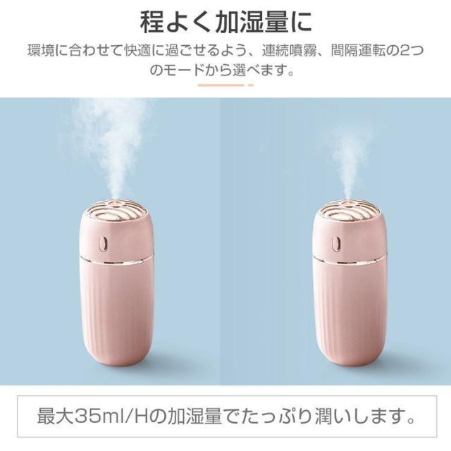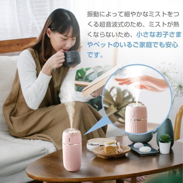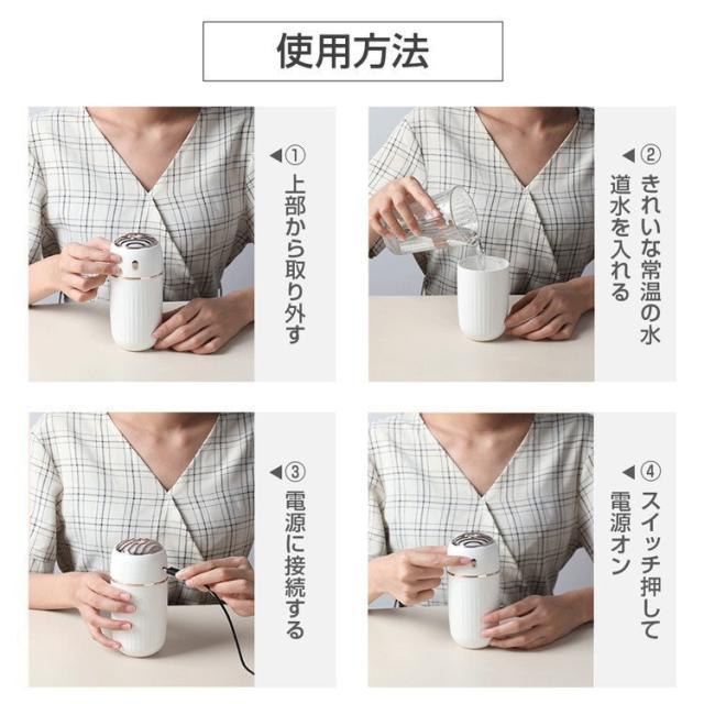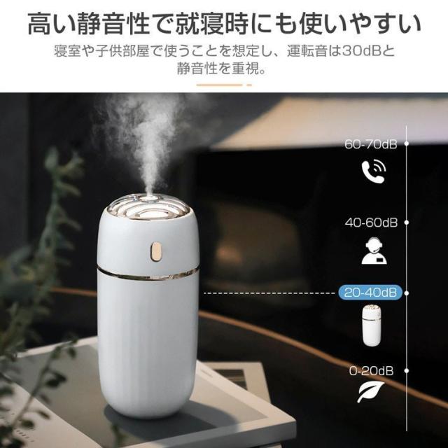 超音波加湿器 卓上 小型 加湿器 おしゃれ 大容量 USB 給電式 LEDライト付き 静音 省エネ 節電 エコ 300ml 次亜塩素酸水対応 持ち運び 車載用