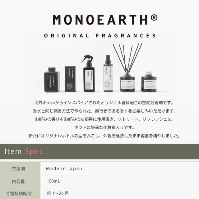 \増量リニューアル/ モノアース MONOEARTH ガラスボトル 置き型 リードディフューザー エアーフレッシュナー ( Aroma Diffuser 150ml ) ルームフレグランス ジャパニーズホワイトティー 空間芳香剤 香水 Japanese White Tea ルームフレグランス オフィス お部屋 アーベン