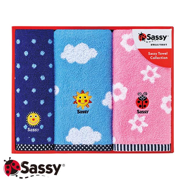 Sassy サッシー タオル フェイスタオル×2、ウォッシュタオル×1 〈SA-7250〉 ギフトボックス入り 出産お祝い 誕生日プレゼント お返し 入園祝い