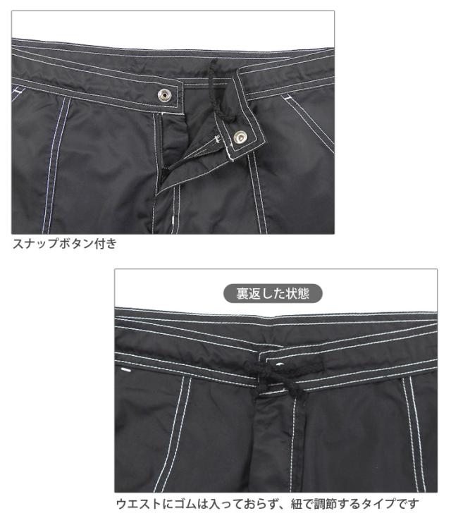 ウエストはゴムが入っておらず、紐で調節するタイプです。