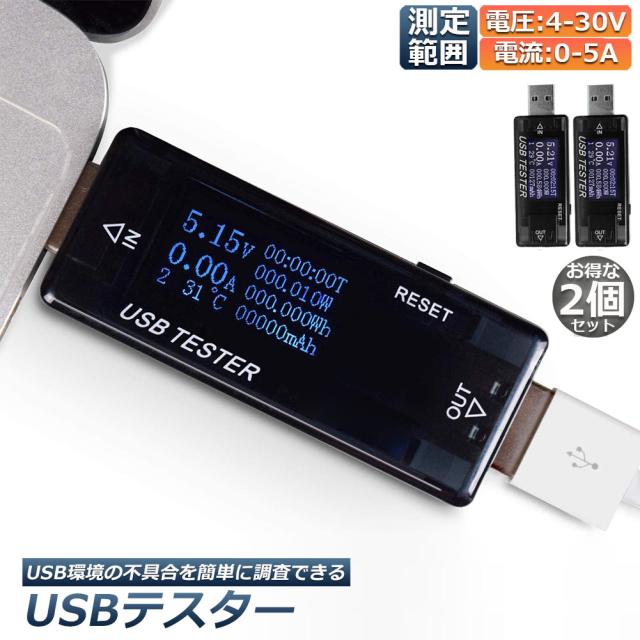 USB 電圧 電流 チェッカー USBチェッカー USBテスター 2個セット 電圧電流テスター デジタル USBマルチメーター5A 30V 電圧計メーター 電流計テスターPD多機能ディスプレイ 容量 電圧 電流検出器 送料無料
