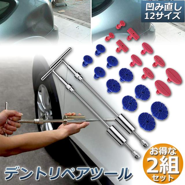 デント修復ツール デントリペアツール 車へこみ修理 2組セット 塗料無し デントの修復 Tバー スライドハンマー 引っ張り 板金工具 DIY修理工具 凹み 補修 整備工具 ペイントレス リペア