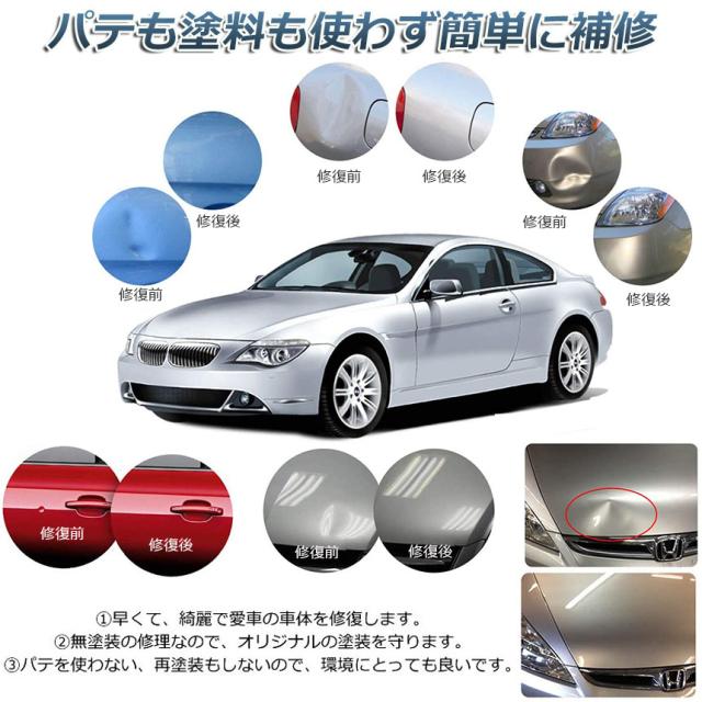 【使用簡単】修理工場の普通修理は数日間が掛かりますが、今はそなん必要がなく、自分で簡単に作業し、短時間で凹み直しが可能です。気になる凹みをパテも塗料も使わず簡単に補修が出来ます。愛車を綺麗に手入れします。