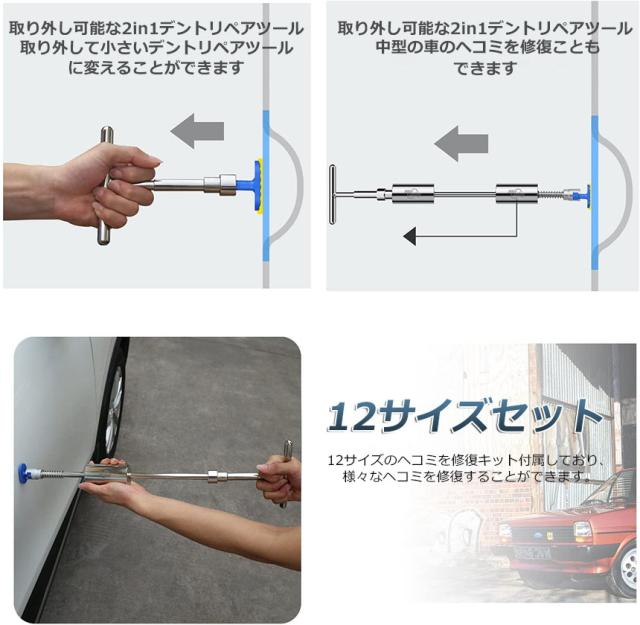 デント修復ツール デントリペアツール 車へこみ修理 4組セット 塗料無し デントの修復 Tバー スライドハンマー 引っ張り 板金工具 DIY修理工具 凹み 補修 整備工具 ペイントレス リペア