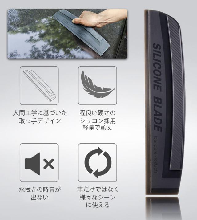 【ご使用上の注意】水切りワイパーはホコリや鉄粉などが付着している状態で使用しますと、表面をキズ付ける恐れがあります。十分ご注意ください。