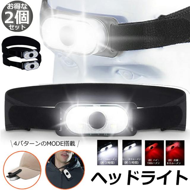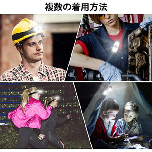 キャップライト ヘッドライト ヘルメットライト 2個セット クリップライト 6COB 2WAY 帽子ライト 両方使用可 防災 作業用 軽量 充電式 登山 夜釣り キャンプ 4つ点灯モード