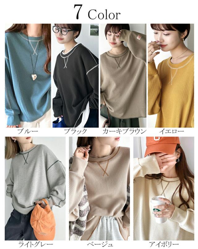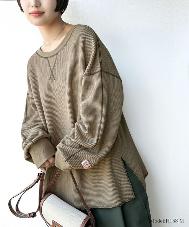 秋新作 クラシカルエルフ javaジャバ 別注 トップス Tシャツ レディース 前後 2way 配色ステッチ ワッフル ロンT 男女兼用 ユニセックス メンズ サイドスリット ゆったり オーバーサイズ 大きいサイズ jv1260065