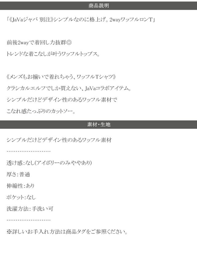 ★《JaVaジャバ 別注》シンプルなのに格上げ。2wayワッフルロンT★